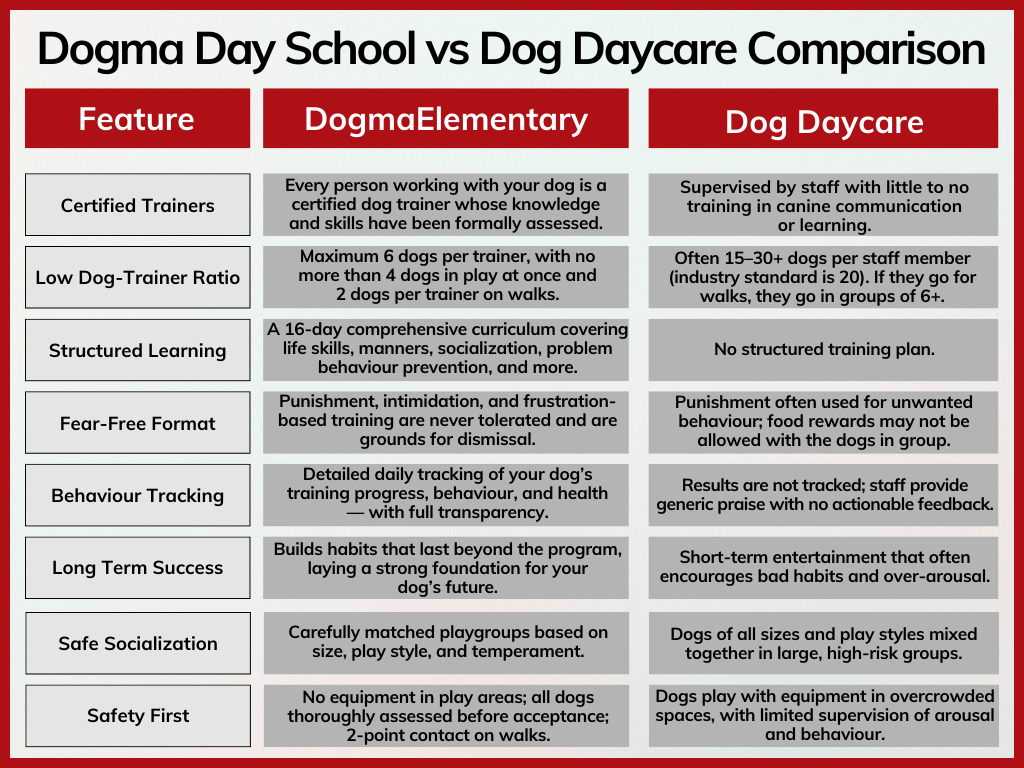 For adolescent and adult dogs who deserve more than a crowded playroom, DogmaElementary offers a proven, structured path to better behaviour, stronger social skills, and a calmer, happier life with you.